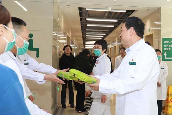 儿科就诊高峰期,院领导班子亲切慰问一线职工