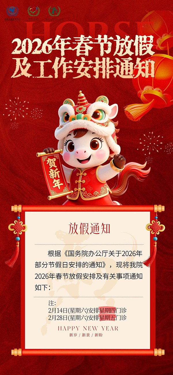 2026年春节(2.15-2.23)放假9天,北京儿童医院顺义妇儿医院门诊医技安排如下: